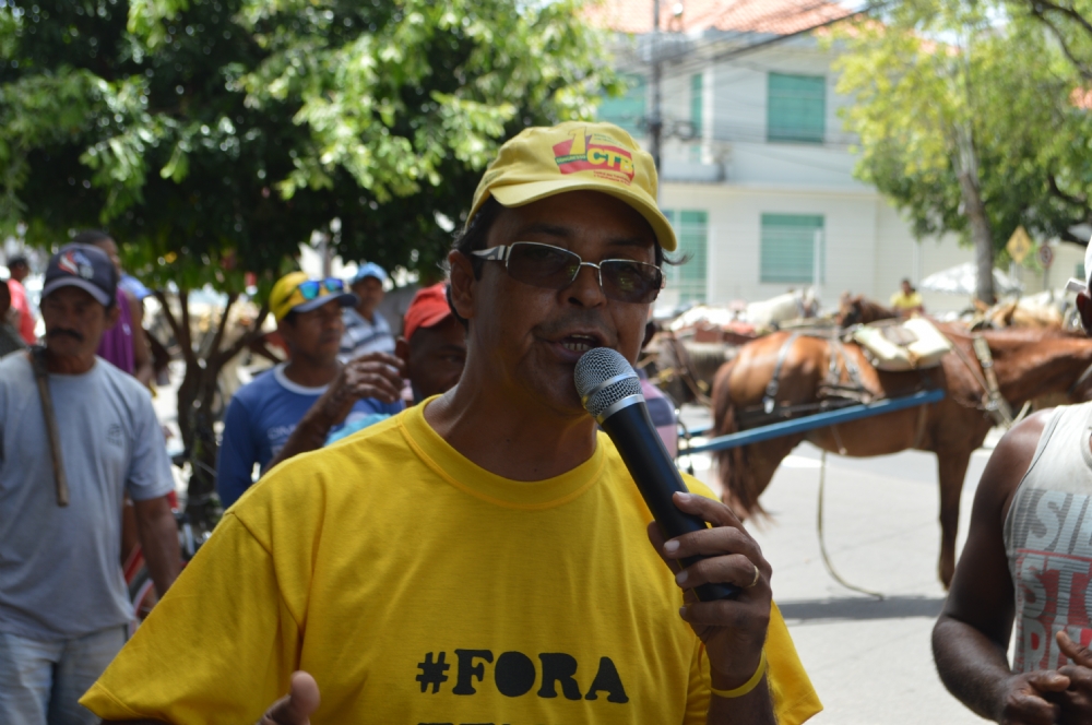 | Em discurso durante o ato, Palhaço Soneca declarou apoio aos carroceiros (Foto: Portal Infonet) |