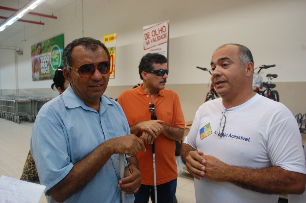 Em prosseguimento ao Projeto Aracaju Acessível: Práticas Cidadãs de Acessibilidade, desenvolvido pelo vereador Lucas Aribé (PT) em Aracaju, foi realizada na manhã desta quarta-feira, 17, uma ação no supermercado G. Barbosa do Shopping Riomar. Cegos da Associação dos Deficientes Visuais de Sergipe (Adesive), e surdo que estuda no Instituto Pedagógico de Apoio ao Surdo de Sergipe (IPAESE), foram acompanhados por representantes da Associação dos Supermercados de Sergipe (ASES) e por Lucas Aribé, no sentido de mostrar as dificuldades enfrentadas nos estabelecimentos.