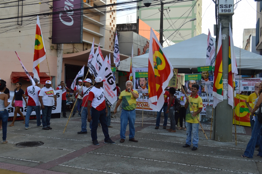 Representantes da Central Geral dos Trabalhadores (CGT/SE) e da União Geral dos Trabalhadores (UGT/SE) realizaram na manhã desta sexta-feira, 29, um ato no calçadão da rua João Pessoa, contra o projeto de terceirização.