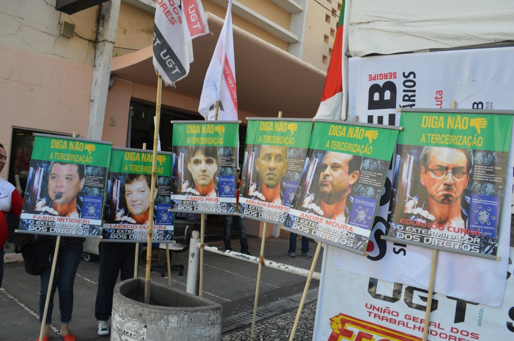 Na ocasião, foram expostas fotografias de deputados estaduais por Sergipe que votaram favoráveis ao projeto. “Estamos com fotos dos parlamentares sergipanos que votaram contra os trabalhadores e pedindo apoio aos senadores no Congresso. Queremos fazer uma grande mobilização com apoio da sociedade e da imprensa para que a gente possa reverter esse quadro e não colocar em risco o trabalho no Brasil”, completa.
