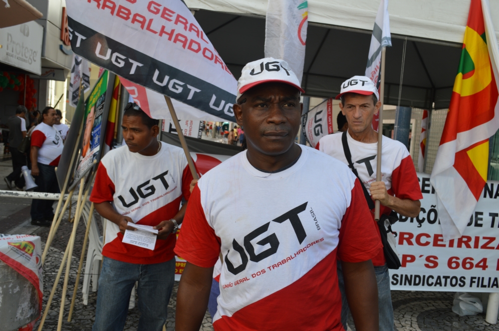 “Estamos aqui com a CTB e a UGT fazendo um protesto contra o projeto de terceirização que está no Senado e já foi aprovado na Câmara. A luta é para que a gente possa barrar o projeto que é muito ruim, vai precarizar, acabar com o concurso público, criar na Constituição, trabalhador de segunda categoria”, destaca o presidente da CTB, Edival Góes.