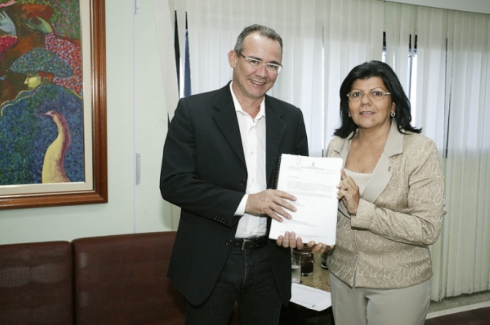 | Secretário José Sobral entregando projeto à deputada Angélica Guimarães (Foto: Marcos Rodrigues) |