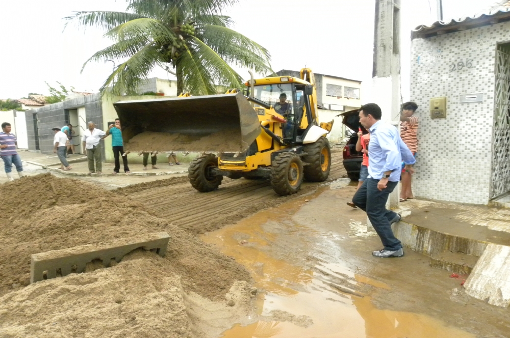 Heleno Silva esteve no bairro Prainha, um dos mais atingidos, para ver de perto os danos causados pela água. Ele determinou ações emergenciais da prefeitura e alertou os moradores para o risco de desabamento local.