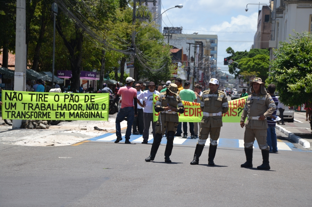 | Clandestinos interrompem tráfego ana rua Itabaiana (Fotos: Portal Infonet) |