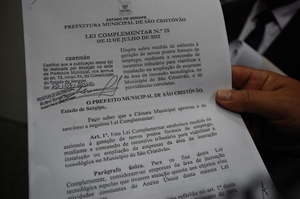 | Cópia da Lei aprovada em São Cristovão em benefício de empresas de TI |