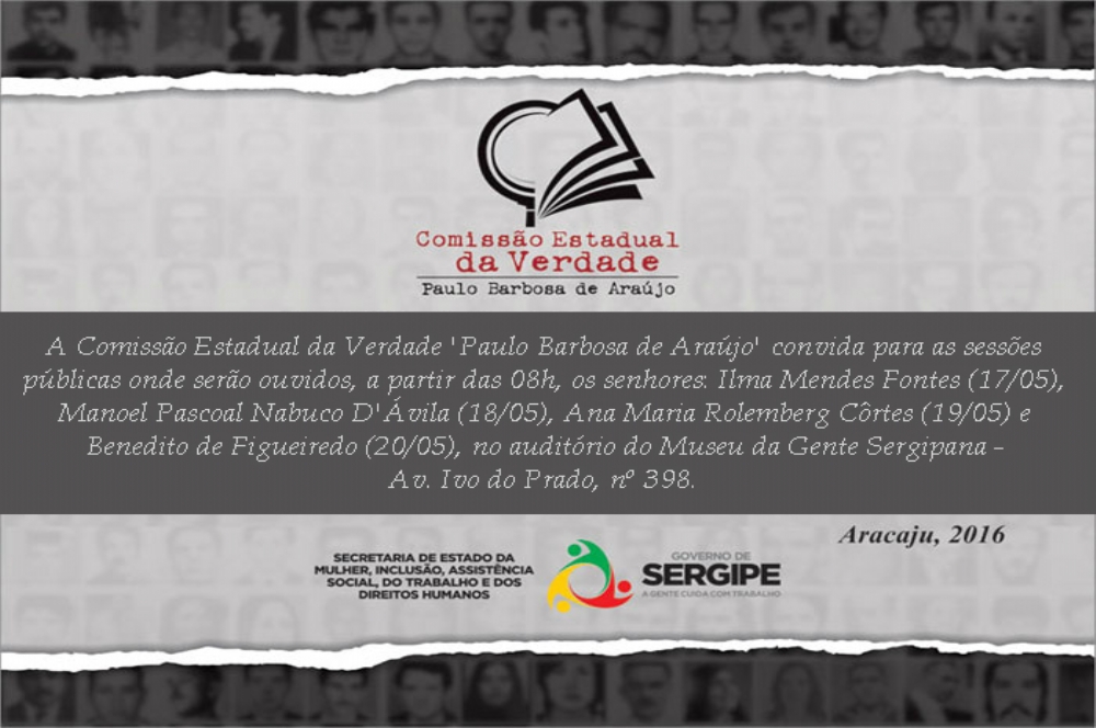 Instituída pelo Governador Jackson Barreto, através do Decreto nº 30.030 de 26/06/2015, a Comissão Estadual da Verdade tem como um dos seus objetivos fazer o levantamento de informações relativas ao período de 1947 a 1985. A Secretaria de Estado da Mulher, Inclusão Social, do Trabalho e dos Direitos Humanos (Seidh) é responsável pela interlocução entre os membros da Comissão e o Governo de Sergipe.