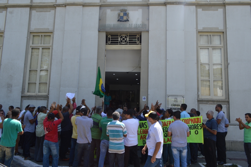 | Cooperativas de transporte protestam novamente na Câmara (Foto: Portal Infonet) |