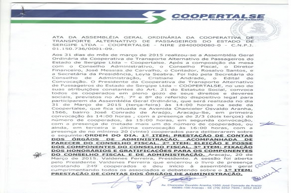 Em relação às denúncias divulgadas ontem no Portal Infonet, o Conselho Fiscal da Cooperativa de Transporte Alternativo de Sergipe (Coopertalse), esclarece que não existem provas sobre desvio de dinheiro. As acusações foram feitas pelo vereador Agamenon Sobral (PP) na Tribuna da Câmara, com base numa ação impetrada por um grupo mínimo de cooperados.