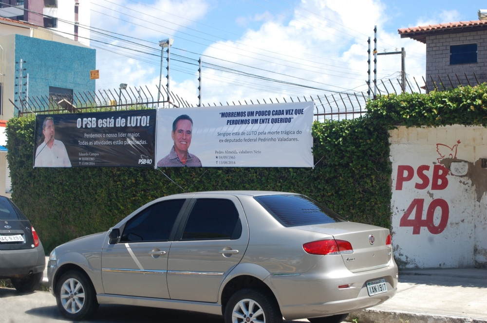 Na sede do PSB em Aracaju, faixas foram afixadas nos muros mostrando o luto pelas mortes do presidenciável Eduardo Campos e do assessor Pedrinho Valadares.