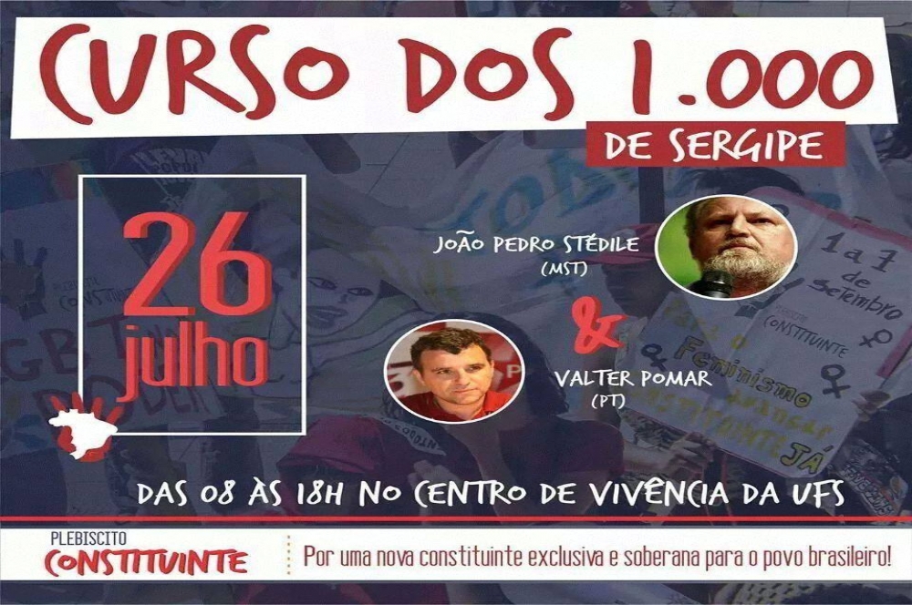 O curso dos MIL, realizado das 8h às 18h, deste sábado, 26/07, no espaço da Vivência Universitária da UFS, é um dia completo de formação, análise de conjuntura e debate sobre o Plebiscito para a Reforma Política, que contará com a presença de, no mínimo, 1000 pessoas de movimentos sociais, dirigentes sindicais, cidadãos e estudantes do Estado de Sergipe.