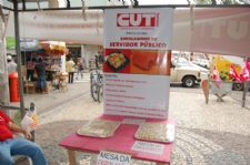 Com essa receita servidores e sindicalistas filiados a CUT realizaram um ato público na manhã desta sexta-feira,2 3, no Centro da capital, onde serviram enroladinhos.