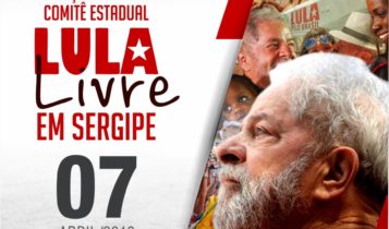 A Central Única dos Trabalhadores (CUT/SE) convoca a sua base sindical para o lançamento do Comitê Estadual Lula Livre em Sergipe que será na Sede Estadual do Partido dos Trabalhadores (PT), localizada na Avenida Barão de Maruim, nº 740, Centro, a partir das 9h da manhã deste domingo, dia 7 de abril. A data corresponde a um ano da prisão do ex-presidente Lula (PT), fundador da CUT, e será marcada por protestos em todo Brasil.