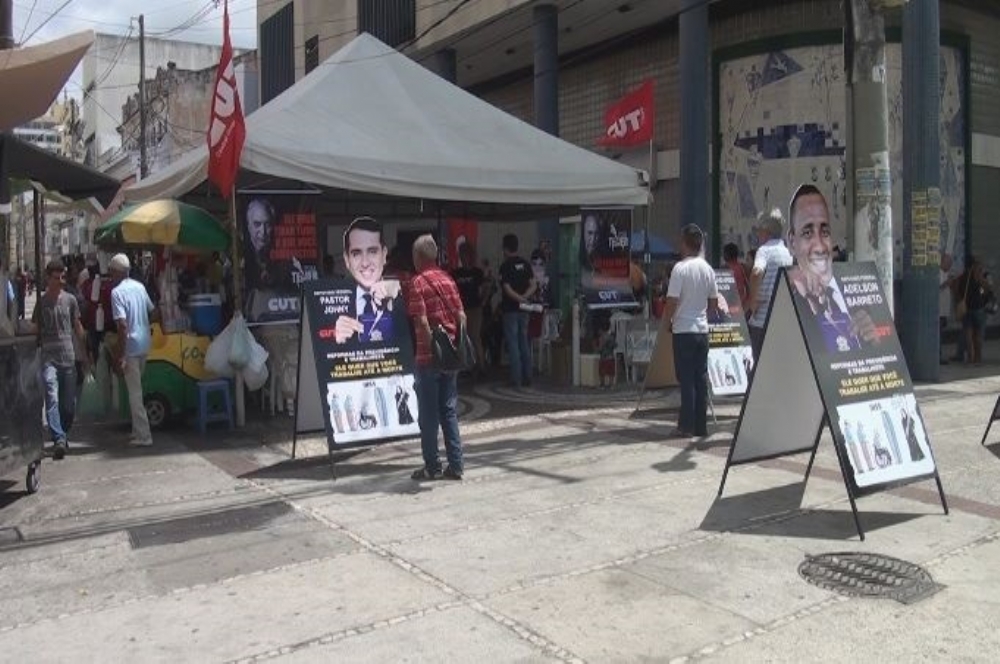 A Central Única dos Trabalhadores e sindicatos filiados realizaram um ato no centro comercial de Aracaju na manhã desta quinta-feira, 9. As entidades são contra a Reforma da Previdência, em tramitação no Congresso Nacional, além de discordar de outras medidas do Governo Federal. Os sindicalistas expuseram ainda a imagem de políticos sergipanos, com intuito de que populares pressionem tais parlamentares para que barrem os projetos de lei.