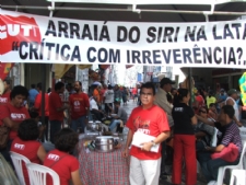 Representantes da Central Única dos Trabalhadores (CUT) estão realizando o forró Siri na Lata por toda a manhã desta terça-feira, 30 no calçadão da rua João Pessoa. A ressaca do São Pedro tem por objetivo repudiar a abertura do comércio aos domingos e feriados e acompanhar a redução da jornada de 44h para 40h semanais no Congresso Nacional. A CUT defende a redução para 30h.