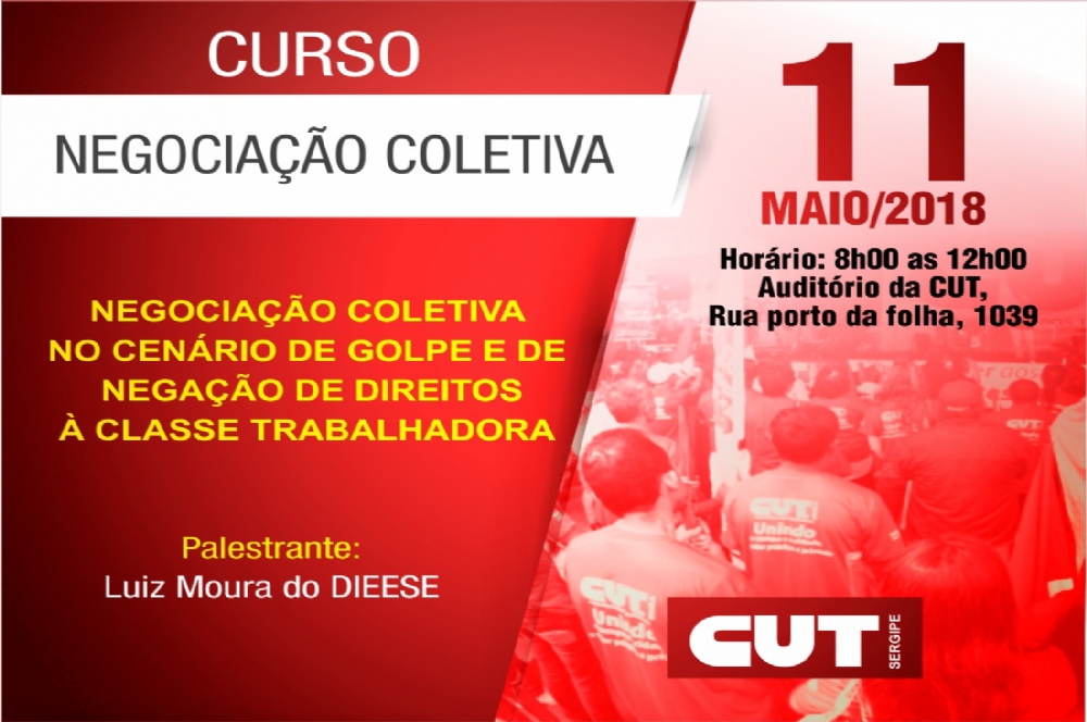 “Quem estuda, luta melhor”. A frase é de Paulo Freire, mas serve de inspiração para convidar todo dirigente sindical filiado à Central Única dos Trabalhadores (CUT/SE) a participar do curso ‘Negociação Coletiva no Cenário de Golpe e de Negação de Direitos à Classe Trabalhadora’, ministrado pelo palestrante Luiz Moura do DIEESE (Departamento Intersindical de Estatística e Estudos Socioeconômicos).