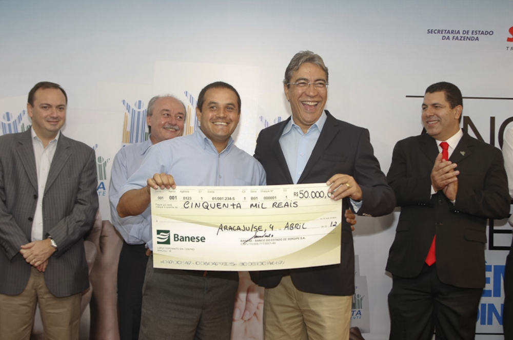 A dona de casa Gilmara Souza, de Nossa Senhora das Dores, não imaginava que ao fazer as compras de fim de ano, levaria mais do que mercadorias para casa. Ela é um dos 1.353 contribuintes sorteados pelo programa Nota da Gente, que recebeu do governador Marcelo Déda o prêmio no valor de R$20 mil na manhã desta quarta-feira, 04, durante a solenidade de entrega da premiação do Nota Fiscal da Gente. A solenidade reuniu sorteados, secretários de Estado e servidores do fisco no auditório da Secretaria de Estado da Fazenda (Sefaz).