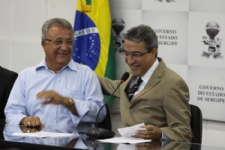 Segundo Marcelo Déda, serão umas férias curtas de 12 dias. “Com isso, o vice-governador Jackson Barreto dará continuidade ao trabalho que nós desenvolvemos juntos, uma relação de plena confiança. O governador se afasta e o vice assume para dar andamento às diretrizes fazendo com que a máquina continue trabalhando”, ressalta. Piso Na ocasião, o governador foi abordado pela imprensa quanto ao pagamento do Piso Salarial Profissional Nacional do magistério com base no reajuste do MEC em 2011 [15%]. De acordo com ele, terá uma reunião no próximo dia 29 com representantes do Sintese no sentido de discutir uma maneira de pagar a integralidade do Piso. “O Governo do Estado não questiona o direito do Piso, considerando que é legal. Em junho de 2010, sem nenhuma reivindicação dos professores, nós pagamos o Piso, mas hoje não temos condições financeiras de recuperar de uma só vez. Vamos sentar com os secretários de Educação, de Finanças e o sindicato, para construir uma solução de pagar o Piso e não sufocar as finanças do Estado. Os professores sabem a situação do magistério face a outros estados”, enfatiza.