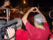 Após atender à imprensa na porta do seu apartamento, Déda se dirigiu até à casa dos pais e em seguida à festa de comemoração em frente ao Comitê Central, à Av. Barão de Maruim.