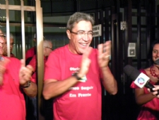 Marcelo Déda disse ainda que no novo projeto de Governo, haverá dois secretários de saúde. “Um que eu indicar e o Governo, pois o povo de Sergipe merece uma saúde melhor”, ressalta destacando que somente discutirá o secretariado em dezembro. Déda saindo para comemorar a vitória