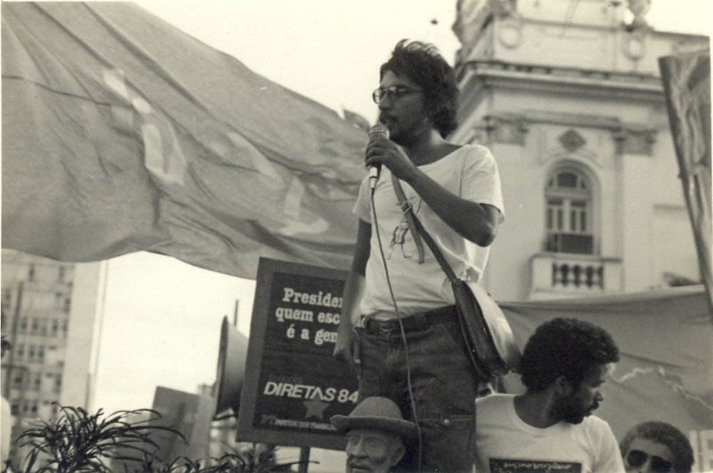 | Déda em campanha das Diretas Já (Fotos do Arquivo do PT) |
