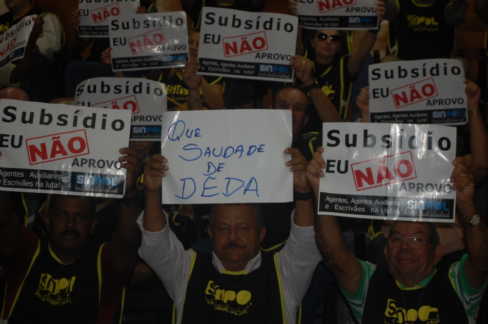 Os policiais civis deixaram as galerias insatisfeitos, por não ter sido levada em consideração o que foi aprovado em assembleia da categoria, quanto à questão do subsídio. “Dos quatro itens impostos pelo Governo, após várias negociações, os policiais não concordaram com apenas um que é a do subsídio, pois fraciona a base da Polícia Civil. Os policiais deixam de receber horas extras e gratificação por apreensão de armas de fogo. Esse projeto vai dividir a categoria”, lamenta o presidente do Sinpol, Antônio Moraes.