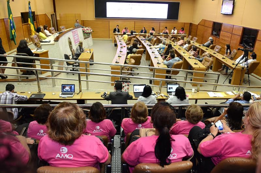 | Mulheres vestindas com roupas de cor rosa acompanham debates (Foto: Jadilson Simões/Agência de Notícias Alese) |
