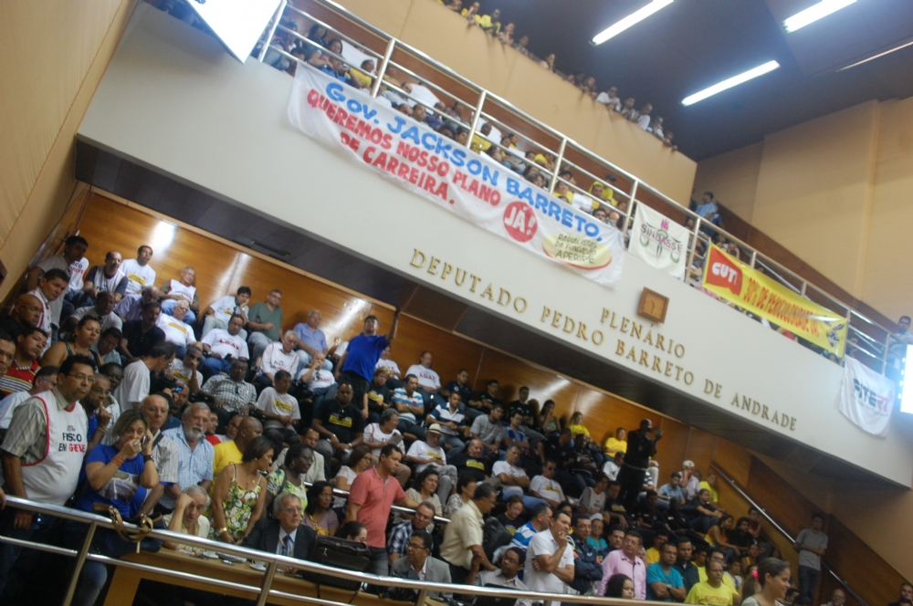 Faltou espaço na porta do plenário e nas galerias da Assembleia Legislativa de Sergipe, na manhã desta quinta-feira, 3. Servidores compareceram em massa para acompanhar o início da votação dos projetos que integram o Plano de Cargos Carreira e Vencimentos (PCCV), encaminhado pelo governador Jackson Barreto (PMDB). Após várias horas de discussões entre os deputados devido à falta de tempo para apreciar os projetos, os parlamentares decidiram convocar Comissões para esta tarde.
