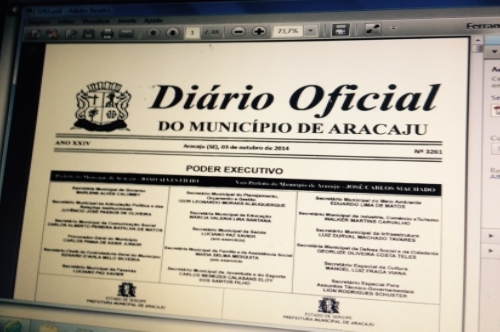 O Diário Oficial de Aracaju possui uma tiragem média de 100 exemplares, que são distribuídos no Tribunal de Contas, Câmara Municipal e secretarias. Ele é publicado todas as segundas, quartas e sextas.