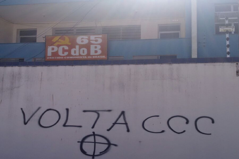 Continua repercutindo o ato de vandalismo contra a sede do Partido Comunista do Brasil (PCdoB) em Aracaju [no Centro], no último final de semana, quando picharam na parede a frase: “Volta CCC”, fazendo referência ao Comando de Caça aos Comunistas. O CCC foi um grupo formado durante o período da Ditadura Militar, acusado de sequestrar e assassinar pessoas contrárias ao regime no Brasil. A direção do partido vai se reunir nesta terça-feira, 1º com o secretário de Segurança Pública João Batista e e posteriormente com o presidente da OAB/SE, Henriclay Andrade, com o objetivo de pedir providências.