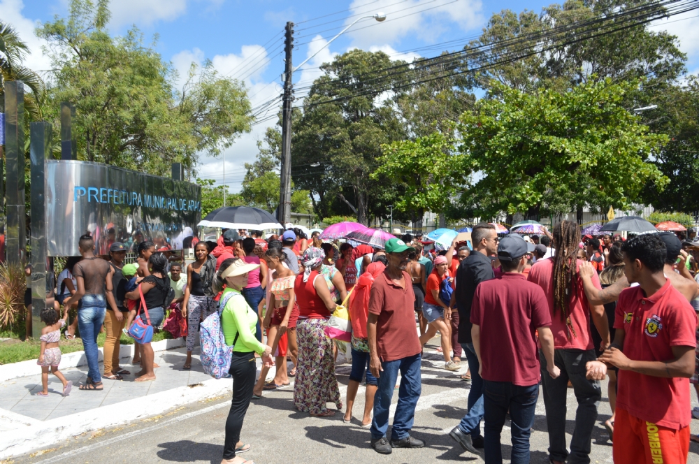 Manifestantes esperam desfecho da reunião em frente à Prefeitura de Aracaju