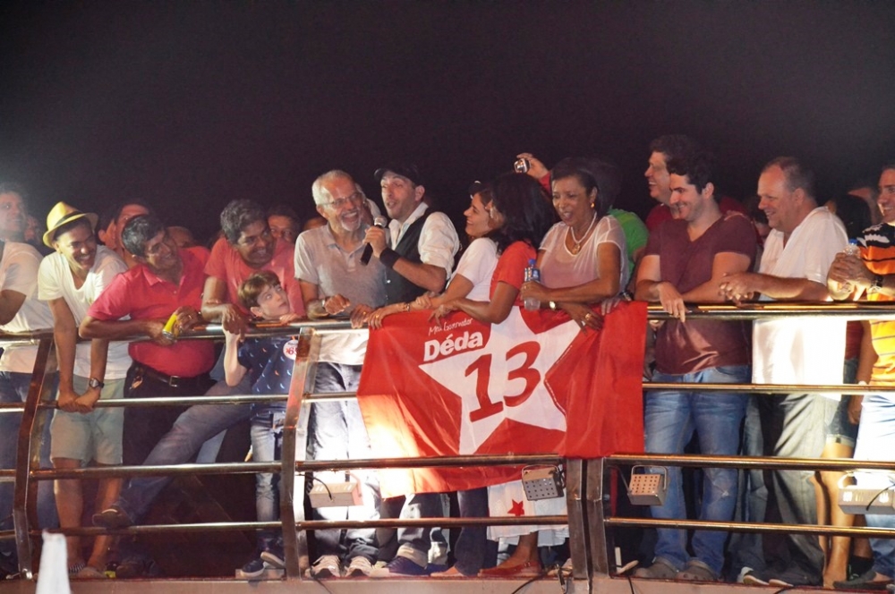 O prefeito eleito Edvaldo Nogueira e seus aliados comemoraram a vitória na eleição deste domingo, 30, nas proximidades de seu comitê de campanha na avenida Barão de Maruim. De cima de um trio elétrico e cercado por aliados políticos, familiares e amigos, Nogueira agradeceu aos eleitores e criticou a campanha do adversário Valadares Filho.