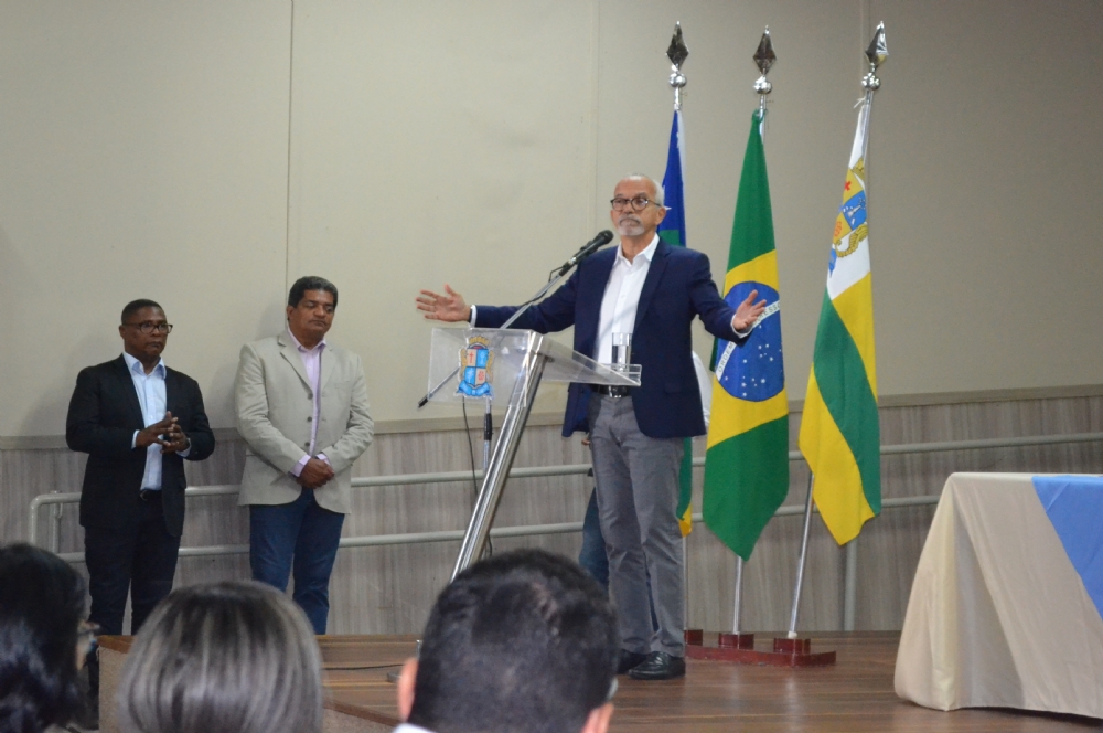 | Edvaldo durante a assinatura de contratos do PSS da saúde (Foto: Portal Infonet) |