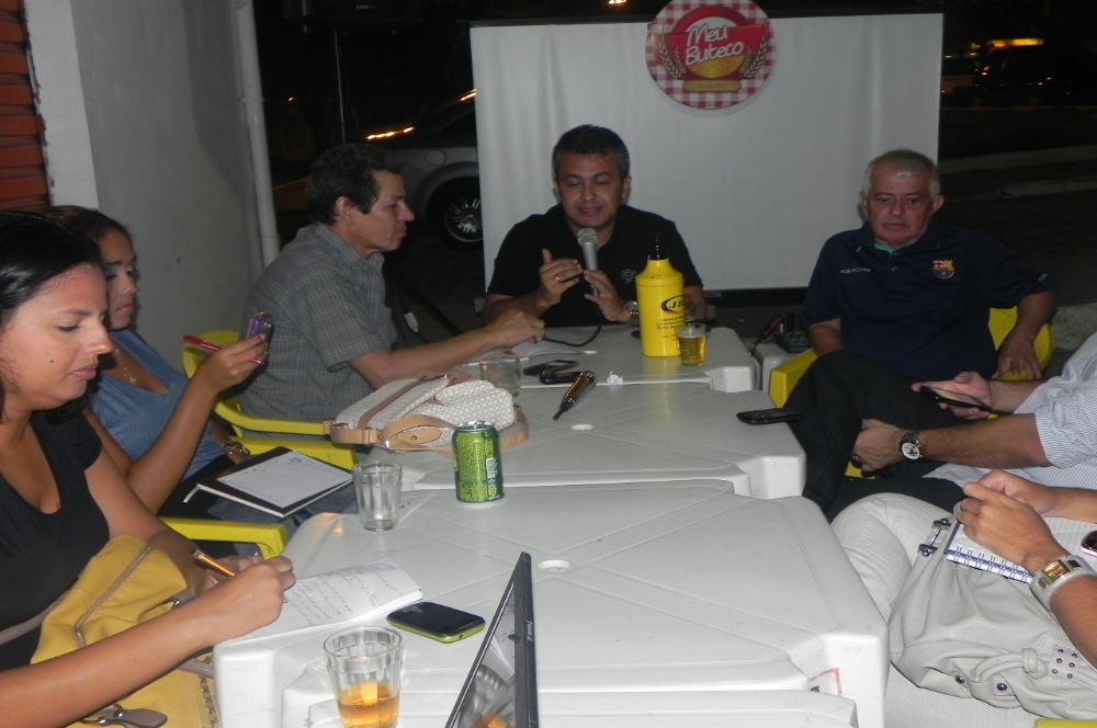 | Vereador responde aos questionamentos dos jornalistas na mesa |