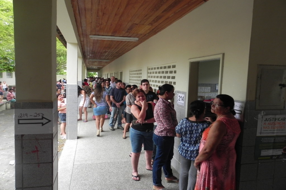 De acordo com a costureira, Emília Rabelo, que vota na seção 216, a longa fila já dura cerca de duas horas. “Cheguei ao local de votação às 11h e agora as 12h50 ainda estou aqui aguardando para registrar meu voto”, lamenta.