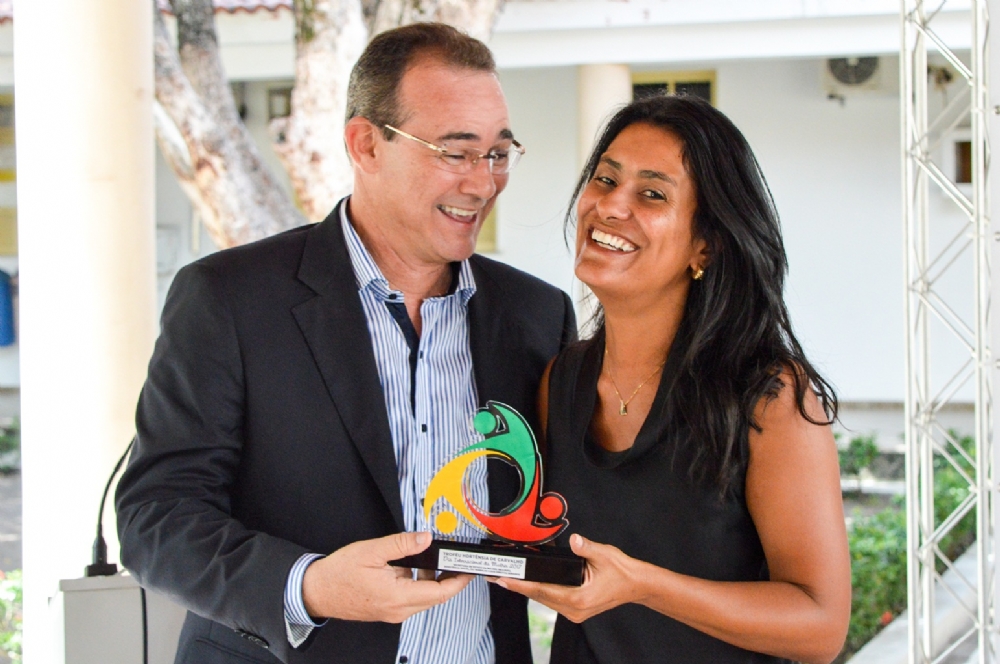 | Vice-prefeita recebeu troféu e provocou reflexões sobre violência e discussões de gênero (Foto: Semasc) |