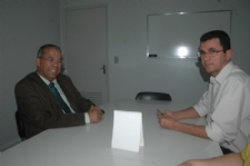 Emmanuel é recebido pelo diretor executivo da Infonet, Nivaldo Almeida/Foto: Heribaldo Martins
