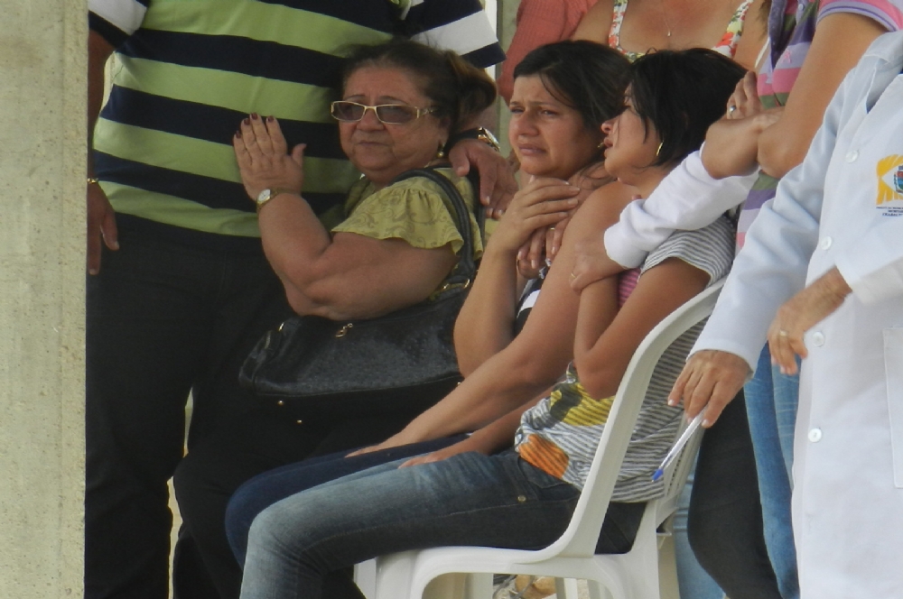 | Amigos e parentes acompanharam a remoção do corpo |
