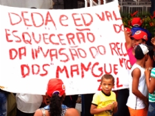 O clima ficou tenso até que a comitiva do presidente Lula chegasse ao local. De acordo com o ambientalista Lizaldo Vieira, são 180 famílias que residem na Invasão dos Mangues há cerca de 9 anos. “A faixa não dizia nada demais [Deda e Edvaldo esqueceram da invasão dos mangues]. Tem um monte de gente com faixas e eles tomaram justo a nossa.