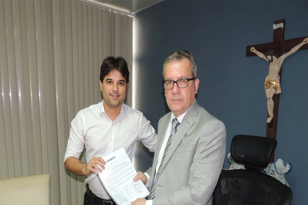 | Fernando Neto entregando documento do desembargador Cezário Siqueira (Foto: Divulgação) |
