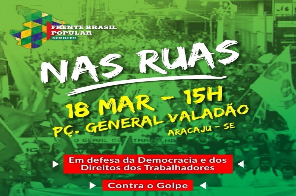 “Há sinais cada vez mais evidentes de que grupos de direita, com conotação fascista, querem forjar confrontos até mesmo físicos nas manifestações de rua, principalmente nas desse domingo, dia 13. Prova disso foram as invasões de sindicatos, como o dos Metalúrgicos de São Paulo, por integrantes da Polícia Militar. Esse tipo de postura não contribui em nada para a democracia, por isso é preciso unidade, organização e vigilância de todos que defendem as liberdades democráticas. Por isso, estaremos nas ruas contra qualquer golpe e qualquer ataque à democracia, assim como iremos nos manifestar contra o ajuste fiscal do Governo Federal, contra a privatização do Pré-Sal e a Reforma da Previdência”, declarou Tadeu Brito, da Frente Sergipana Brasil Popular.