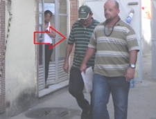 Ao deixar o IML, Galindo(camisa verde) não falou com a imprensa (Foto: Portal Infonet)