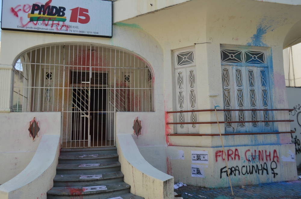 Jackson Barreto lamentou as pichações e os adesivos colados no prédio localizado à avenida Barão de Maruim na noite da sexta-feira, 13. “Eu lamento e posso garantir que nenhum de nós qualquer dia das nossas vidas, vai agredir a sede de outros partidos porque respeitamos. Lutei para que fosse restaurada nesse pais a democracia, que permite com que todos se manifestem. A gente fica questionando por que agredir a sede do nosso partido? Nós não temos nada a ver com os problemas que se passam em Brasilia com o deputado Eduardo Cunha, todo mundo sabe que o PMDB sempre existiu desde o seu nascedouro com diversas correntes, ideológicas e a gente foge da capacidade de entender”, diz.
