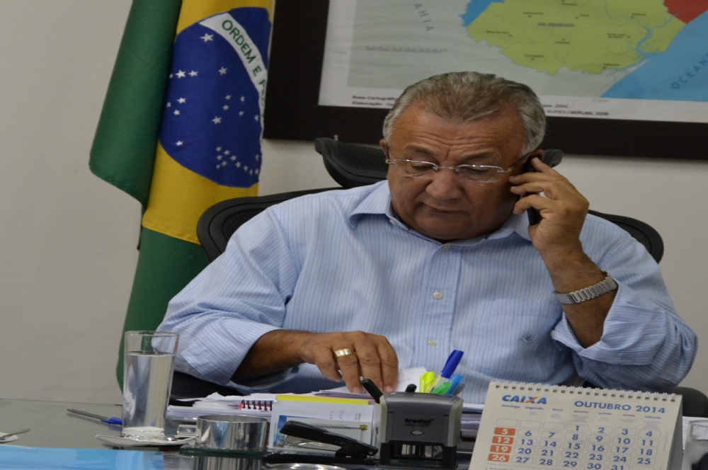 | Jackson Barreto ao telefone com a secretária da SPU em Brasília |