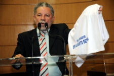 Francisco Gualberto exibe camisa/Foto: Maria Odília