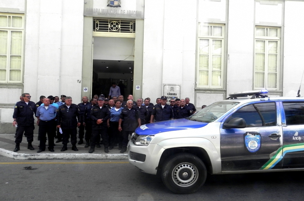 Mais de 100 guardas municipais de Aracaju realizaram, na manhã desta quarta-feira, 16, uma manifestação na porta da Câmara Municipal de Aracaju (CMA), que teve como objetivo impulsionar o cumprimento do Projeto de Lei – PL Nº 151/2015, que transforma a função de guarda auxiliar em guarda municipal, no âmbito de Aracaju. Conforme as atribuições dos respectivos cargos, os trabalhadores anseiam, através do projeto de autoria do vereador Renilson Félix (DEM), a isonomia salarial.