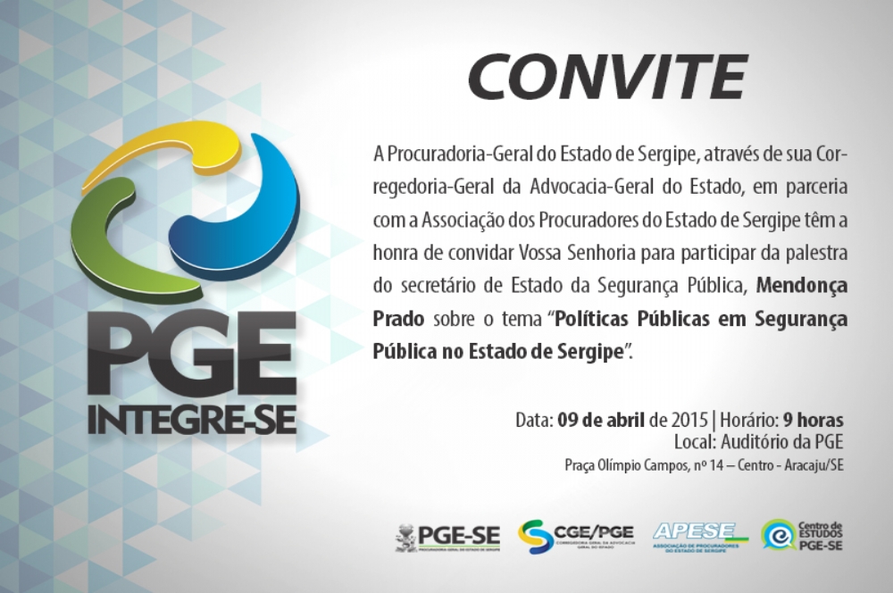 A Procuradoria-Geral do Estado de Sergipe (PGE/SE), através da Corregedoria-Geral da Advocacia-Geral do Estado, em parceria com a Associação dos Procuradores do Estado de Sergipe (APESE/SE) realizarão, no próximo dia 09, às 9 horas, a II Edição do Projeto “PGE Integre-SE”, no auditório da PGE (Praça Olímpio Campos, 14, Centro).