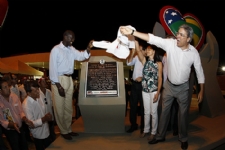 | Momento em que a placa foi descerrada (Foto: Marcos Rodrigues) |