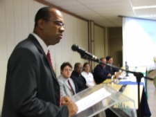 Pela primeira vez na História de Sergipe, o cargo de Defensor Público Geral do Estado será escolhido por meio de uma Lista Tríplice que será encaminhada ao governador Marcelo Déda, para que possa “bater o martelo”. Durante toda a manhã desta segunda-feira, 1º de fevereiro, defensores públicos estiveram participando de uma sessão solene no auditório do Banese para a apresentação das propostas por meio de cinco candidatos. A eleição está marcada para o próximo dia 11 de fevereiro na sede da Defensoria Pública. Candidatos na hora do Hino Nacional
