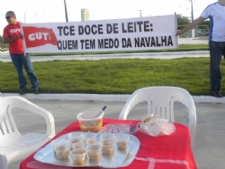 que houve o envolvimento do então conselheiro do TCE, Flávio Conceição. “A CUT cumprindo a tarefa de cobrar ao Judiciário celeridade na apuração das denúncias feitas pela Polícia Federal contra Flávio Conceição. O assunto chegou ao tribunal mas não tiraram da gaveta e o TCE continua com oito conselheiros, prestigiando Flávio Conceição”, ressalta o presidente da CUT, Rubens Marques, o professor Dudu. CUT distribuiu doce de leite