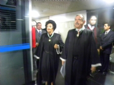 Como sempre acontecem as solenidades no Tribunal de Contas de Sergipe, a que marcou a posse da conselheira Isabel Nabuco na presidência do órgão não poderia ter sido diferente. Mesmo tendo iniciado por volta das 17h45, desde às 16h o auditório estava lotado. “Um grande desafio e estou preparada para enfrentar. Minha gestão será dedicada às mulheres”, disse. Isabel Nabuco e Reinaldo Moura se dirigem ao auditório (Fotos: Portal Infonet)
